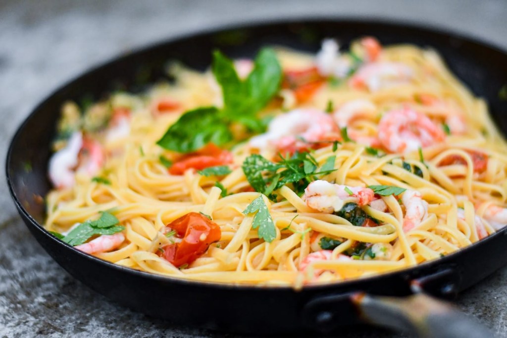 Den lena pastan tillsammans med chili, vitlök, räkor och massor med färska örter passar perfekt när du bjuder hem dina bästa vänner.