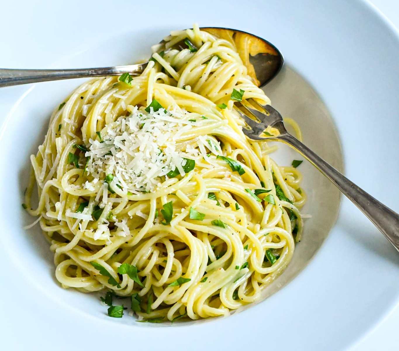 Avsluta med att blanda ner parmesan och hackad persilja.