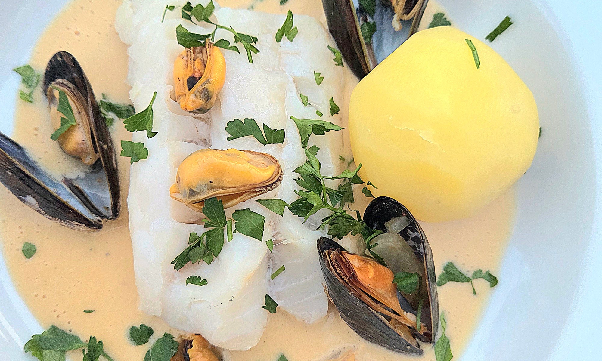 Plocka musslorna ur skalen och toppa med vid servering.