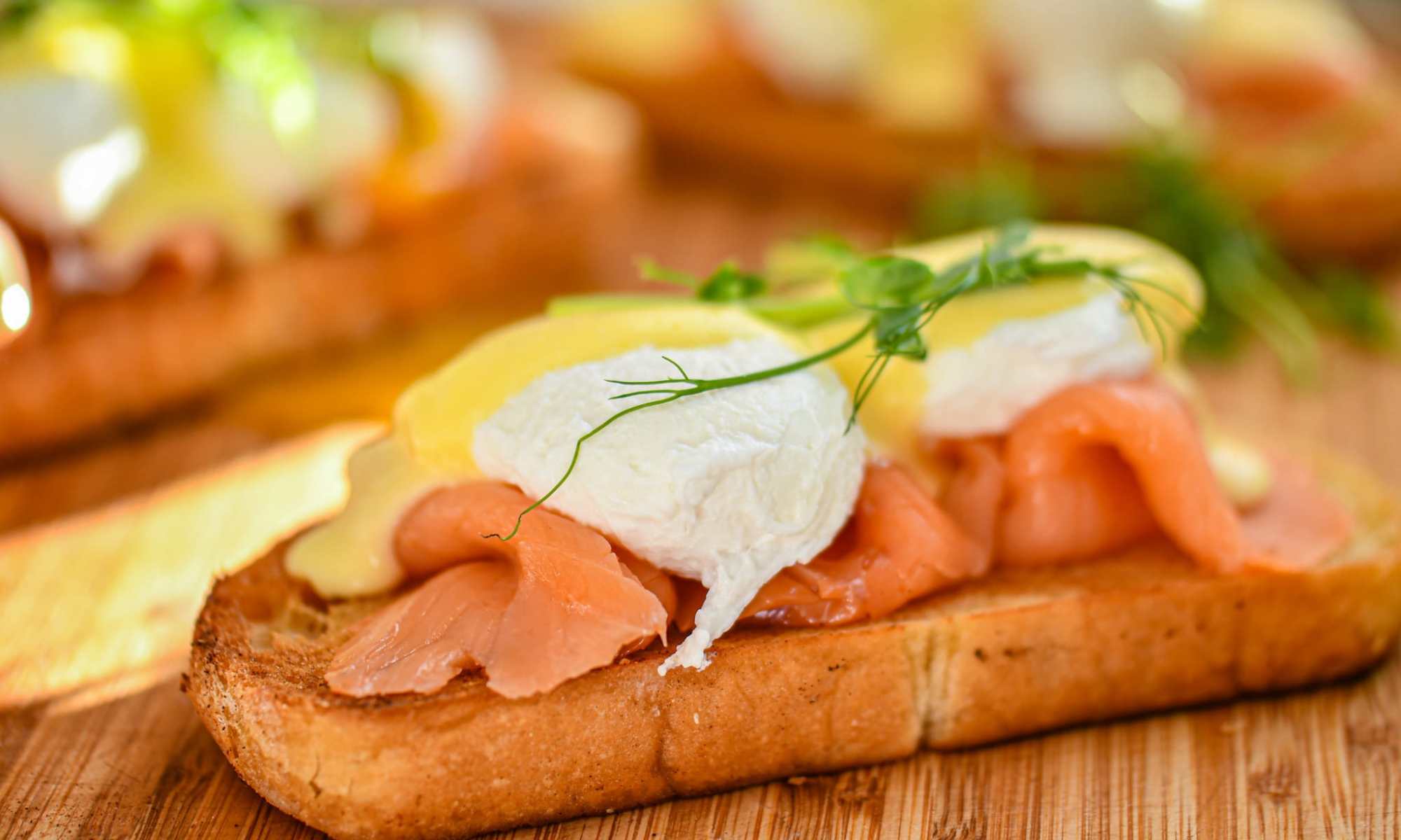2 port 4 ägg 0.75 dl ättika 1 msk salt 2 liter vatten Gott vitt bröd Smör till stekning 150 g kallrökt lax Koka upp vattnet i kastrull med salt. Knäck äggen i en skål och häll på ättikan. Låt ägg och ättika stå och dra ca 5 minuter. Slå i äggen i vattnet och …