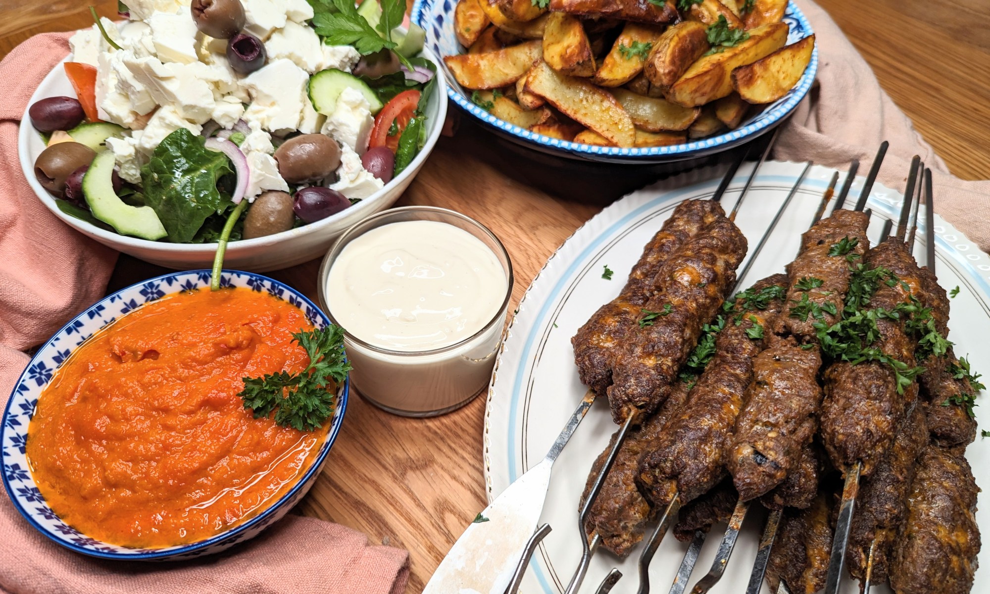 Fortsätt läsa Kryddiga medelhavsspett med tomatsås, grekisksallad och klyftpotatis