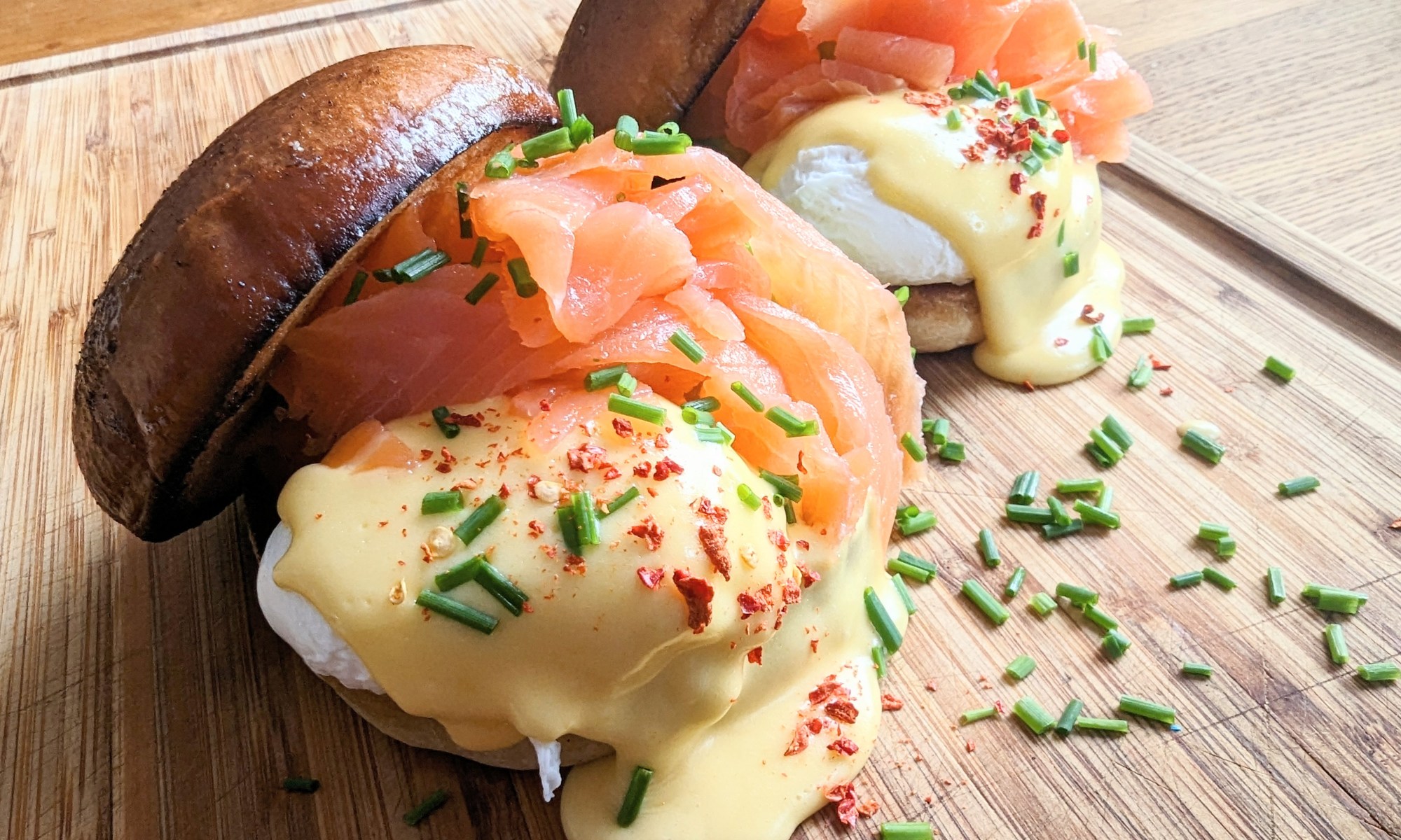 3 port 1 frp kallrökt lax 3 st brioche hamburgebröd 3 ägg 1 knippe gräslök 1 tsk chili flakes smör 0.5 dl ättika 1 avokado Knäck äggen i en skål med ättikan. Koka upp vatten i en lite större kastrull. Gör en virvel i vattnet och slå ner äggen och låt pochera i 4 minuter. …